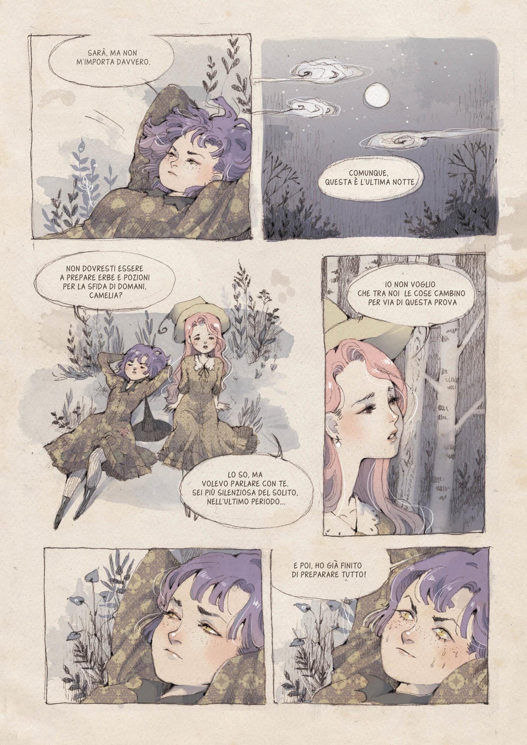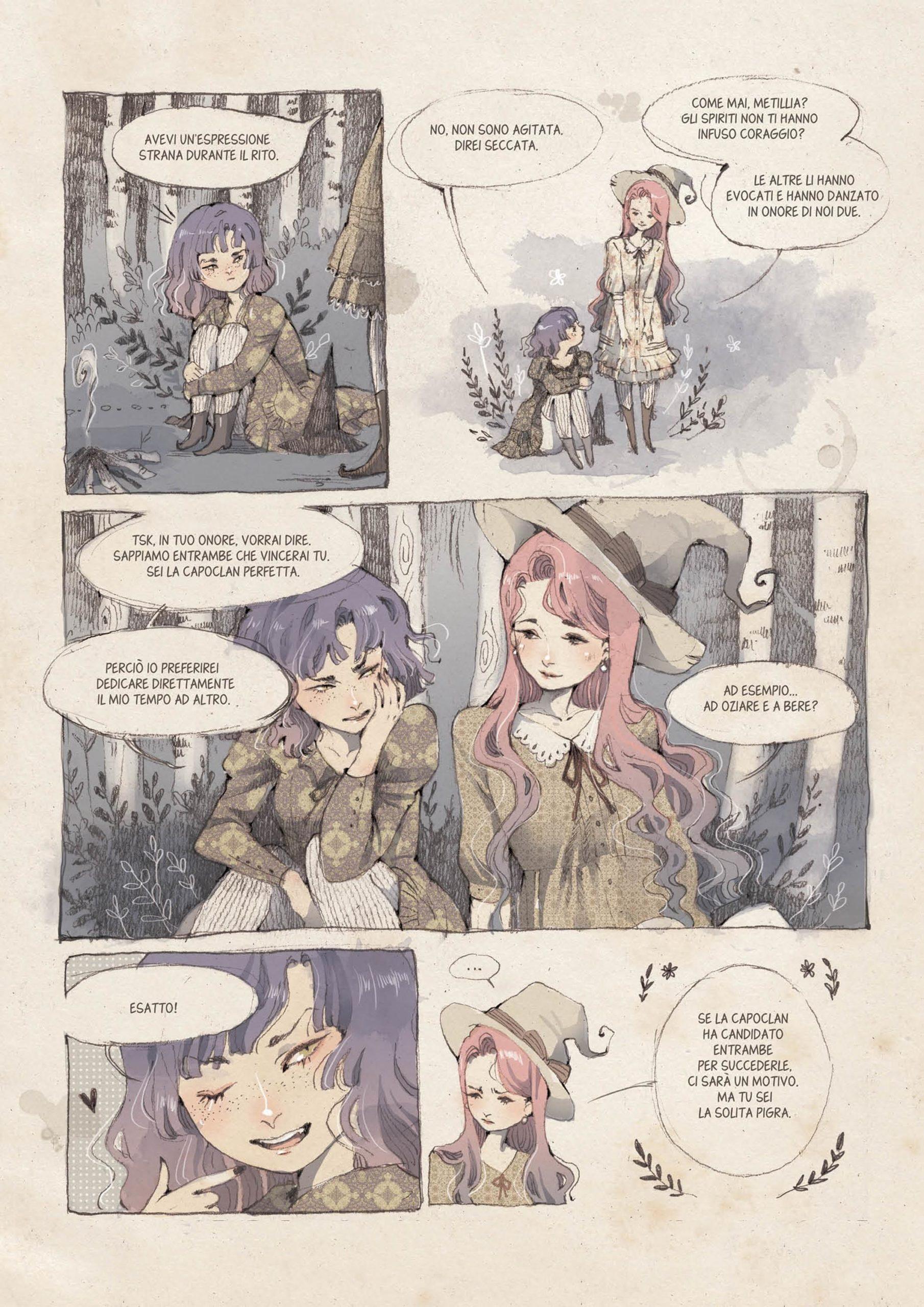 Ai piedi del Monte Orfano le streghe danzano attorno al fuoco, preparando pozioni, evocazioni e incantesimi e ottemperando ai propri doveri. Metillia però ama divertirsi e per farlo non esita a volte a ignorare i propri obblighi. Pur sapendo che ormai manca poco alla prova più importante della sua carriera di strega, non è riuscita a prendere il controllo del proprio destino; ormai è tardi per prepararsi, può solo deludere le aspettative delle sue compagne di clan. Ma proprio l’ultima notte, quando sembrano non esserci speranze per lei, il fato sembra improvvisamente volgere a suo favore.